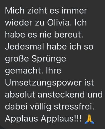 - Du bekommst einen kleinen aber klaren Plan, der sofort das wieder zum FlieĂźen bringt, was gerade stockt. (Ohne To-Do-Stress. Ohne 30 neue Ideen.)