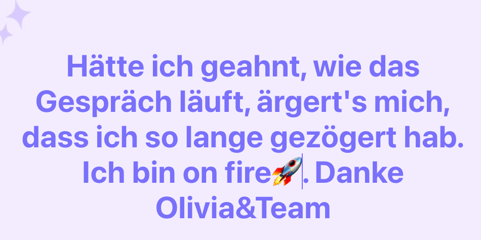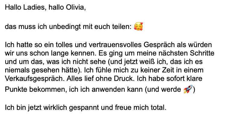 Wir führen nur ein paar dieser Gespräche pro Woche - und vergeben diese nur an Frauen, die zur Zeit wirklich offen für ihre Klarheit sind.